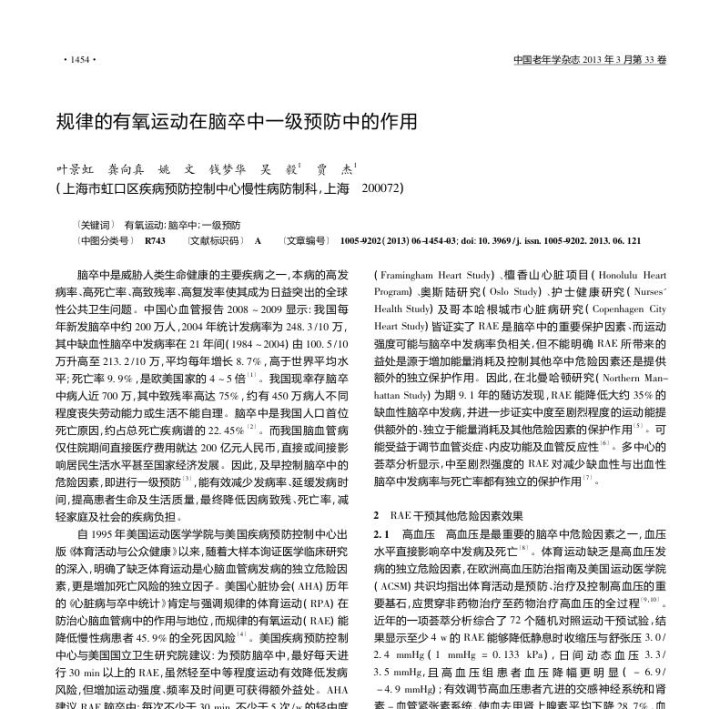 [1]叶景虹,龚向真,姚文,等.规律的有氧运动在脑卒中一级预防中的作用[J].中国老年学杂志,2013,33(06):1454-1456.